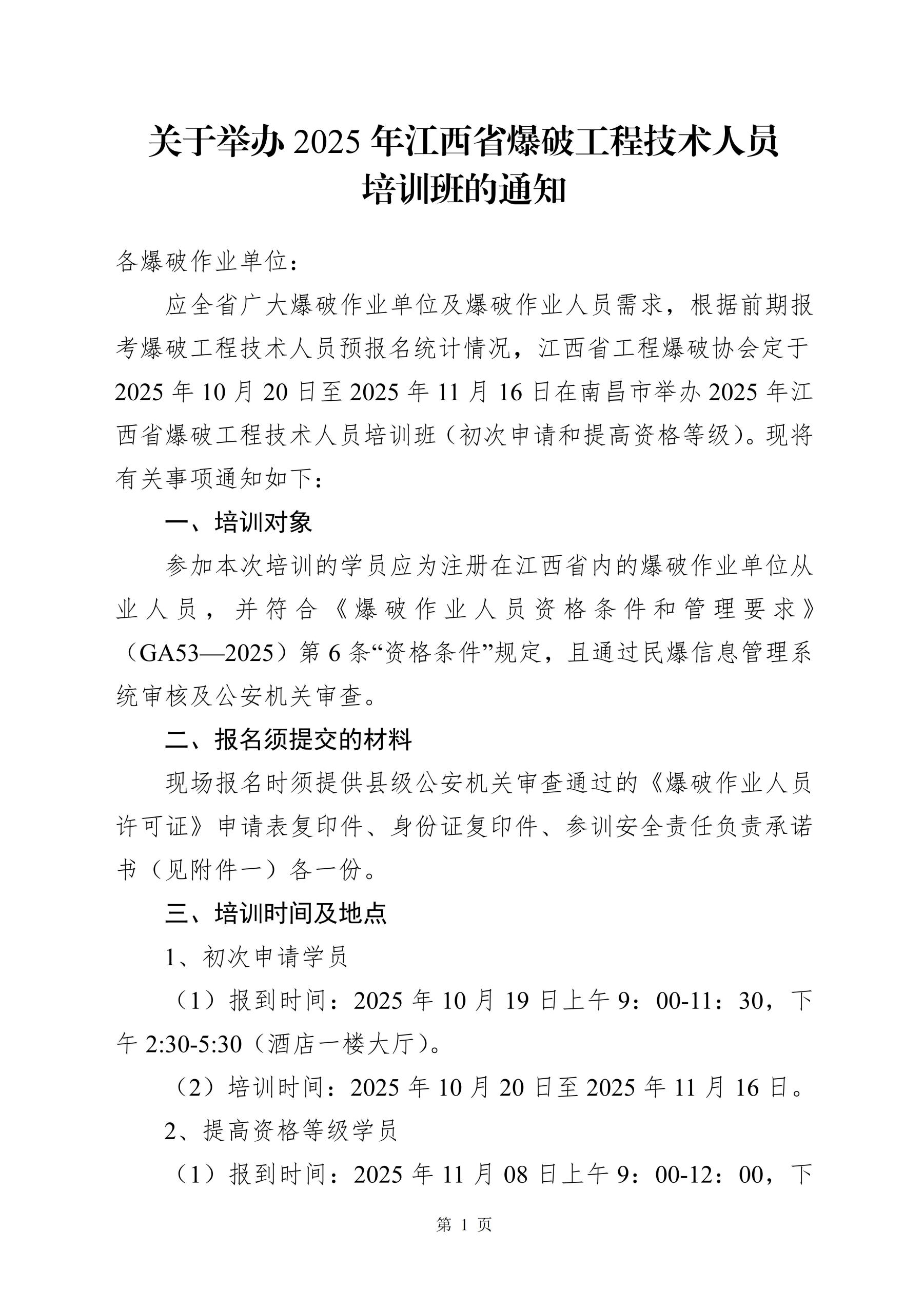 关于举办2025年江西省爆破工程技术人员培训班的通知