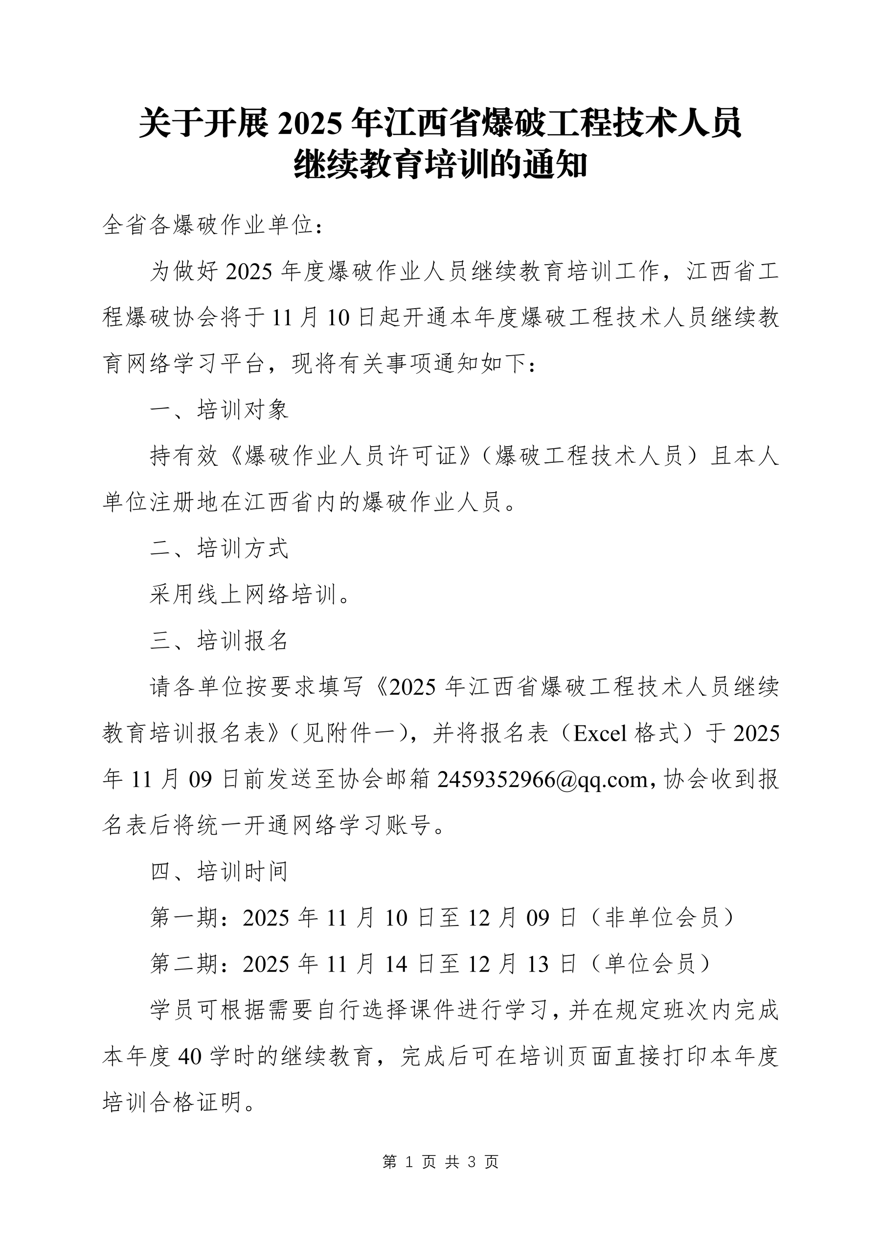 附件一:2025年江西省爆破工程技术人员继续教育培训报名表.xlsx